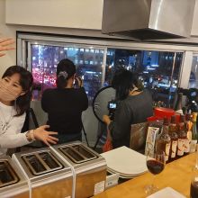 堂島店の店舗を撮影に良い時間に貸切でお借りしまして、夜の堂島の夜景を窓から撮影する